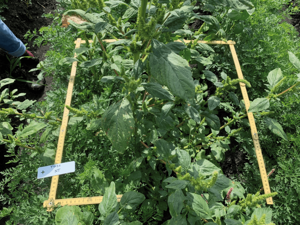 Um estudo de caso, conduzido por nossos agrônomos, destaca o valor agronômico do ARA em um cenário desafiador de manejo de ervas daninhas. Em uma lavoura de brócolis fortemente infestada com a erva-de-raiz-vermelha (Amaranthus retroflexus) e sem soluções pós-emergentes eficazes, o ARA permitiu o uso seguro de um herbicida não seletivopor meio de seu recurso de zona de segurança.