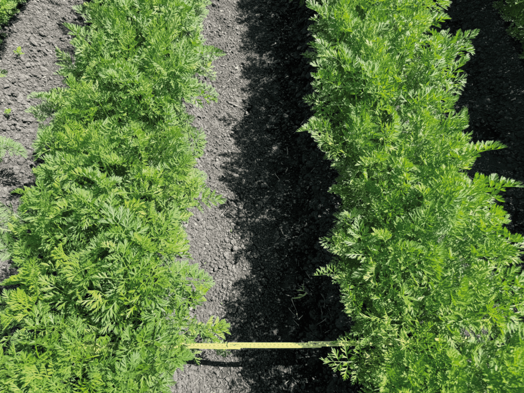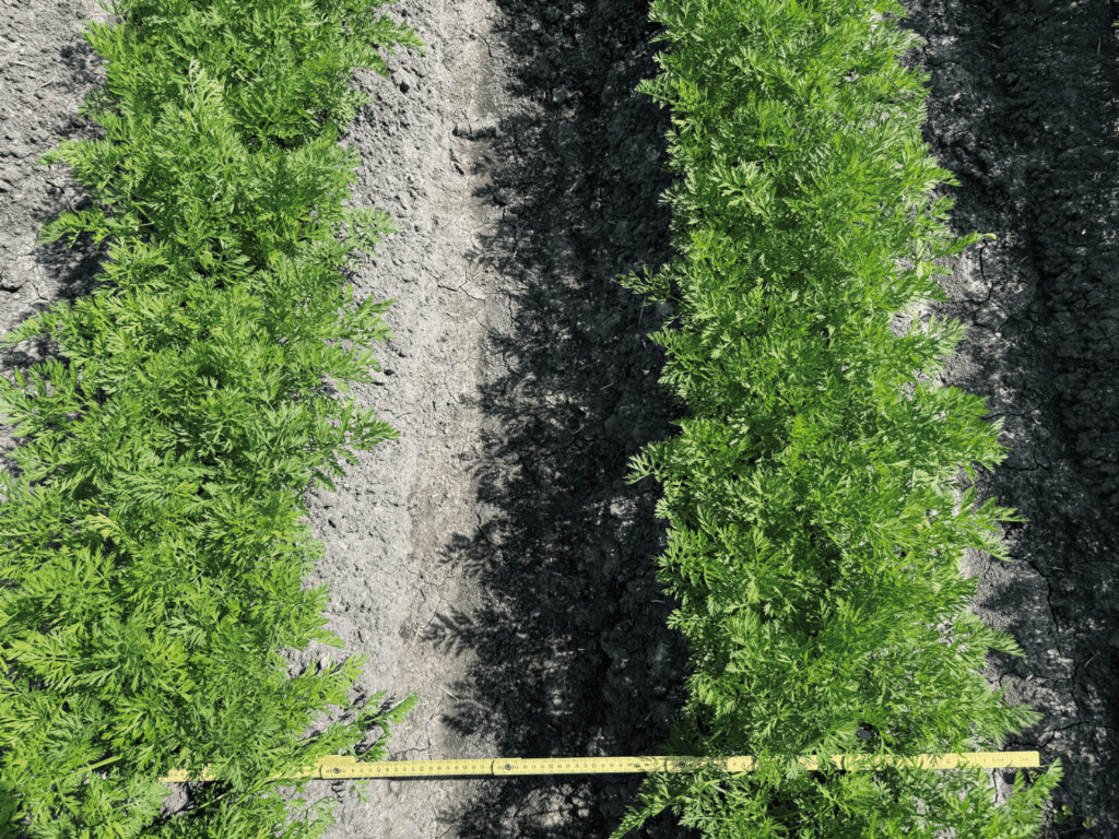 Comparação entre o tratamento de plantações de cenoura com ARA e “sem tratamento”. Graças à aplicação altamente precisa, seus campos de cenoura ficam livres de ervas daninhas, deixando para trás cenouras fortes.